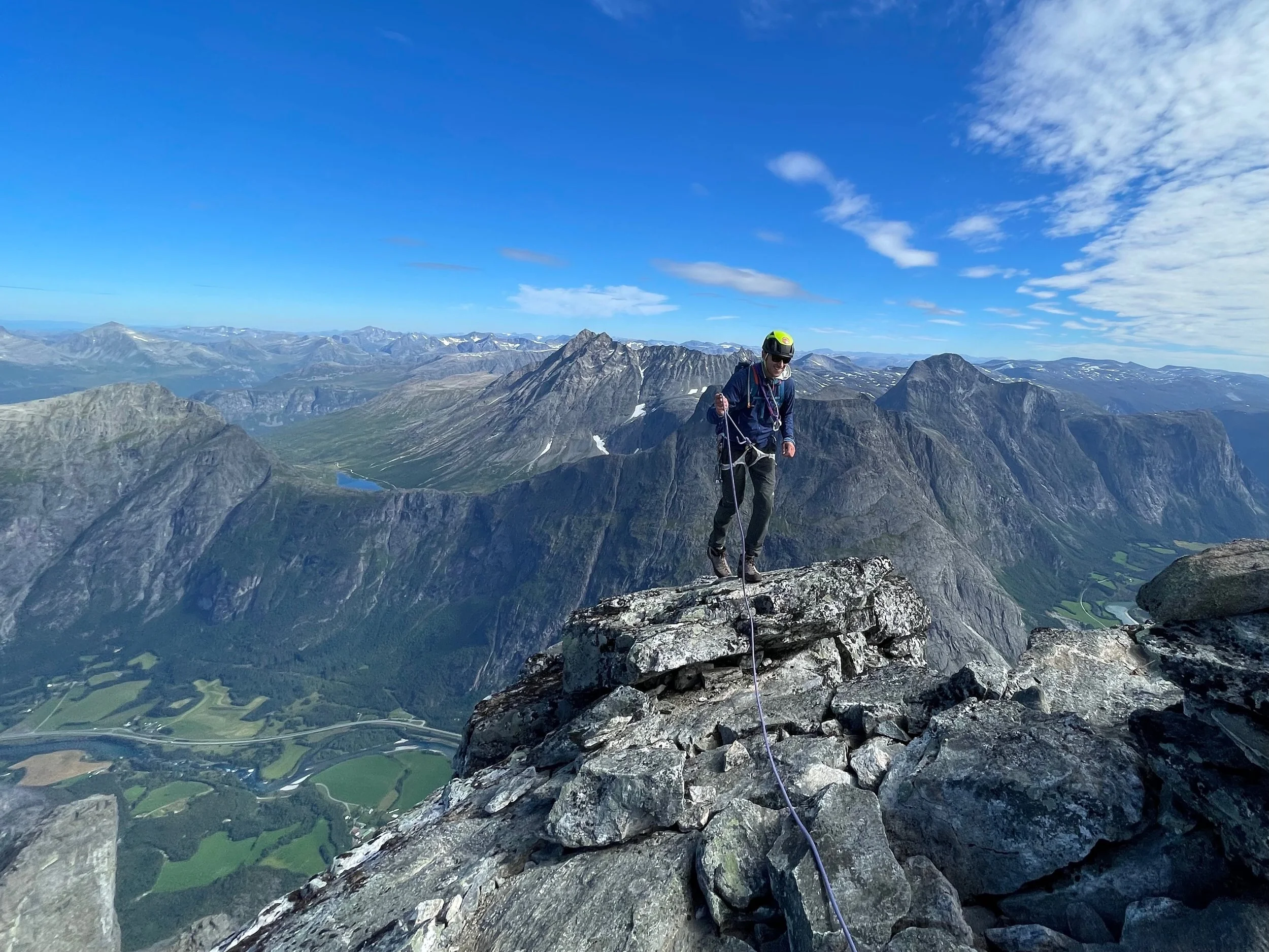 Romsdalshorn sett fra Romsdalen er et dramatisk skue. Og det er ikke noe mindre dramatisk når man er der oppe og ser ned i dalen. Romsdalshorn er et must for alle toppsamlere og for alle de som vil ha en fantastisk fjellopplevelse